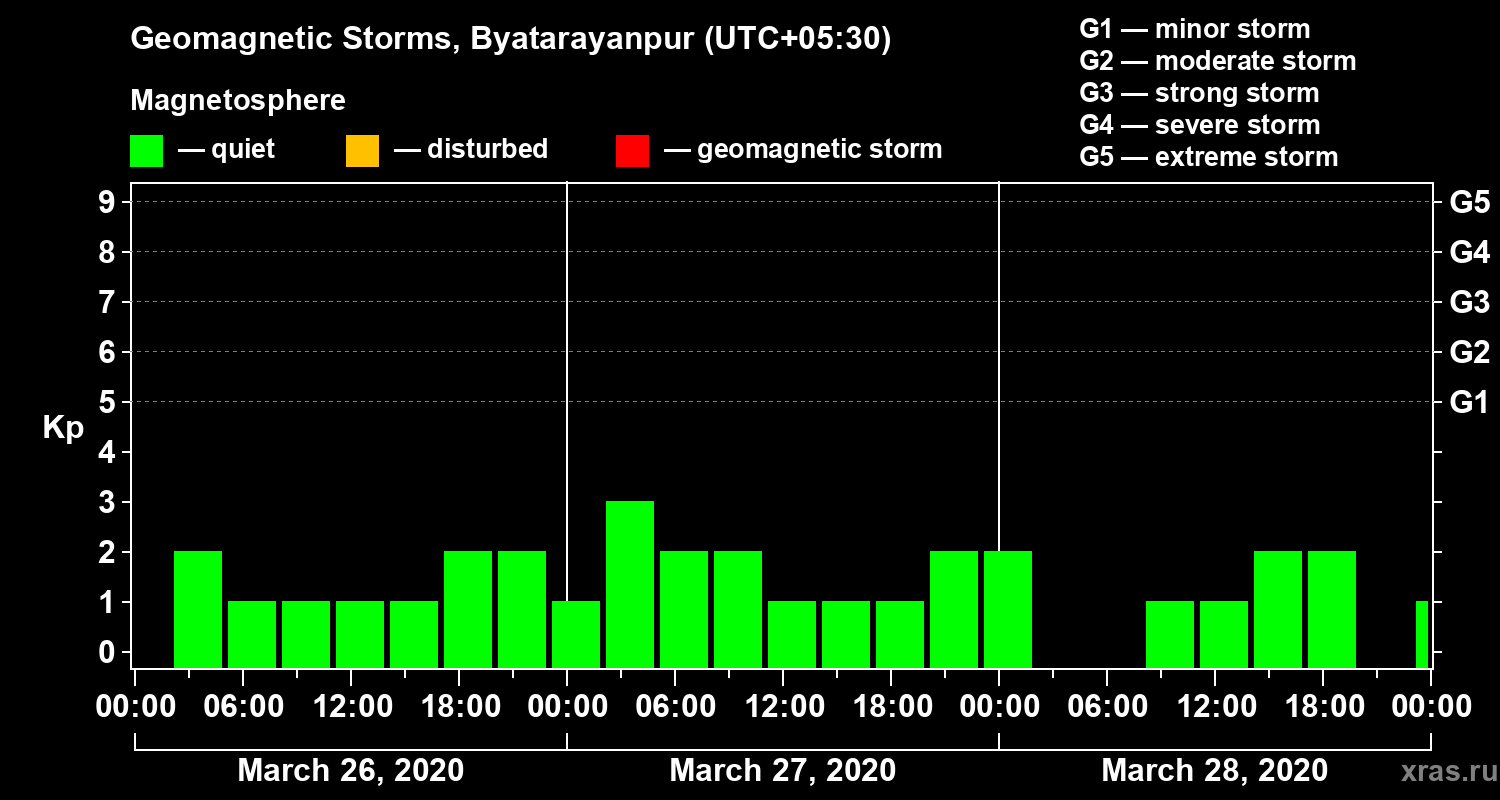 Geomagnetic storms in Byatarayanpur — Mar 28, 2020