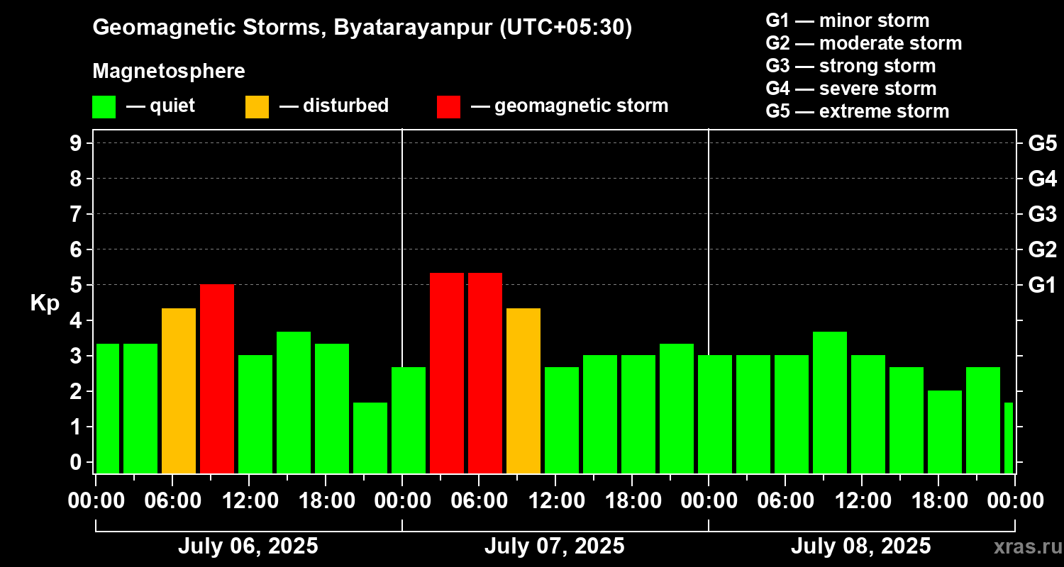 Geomagnetic storms in Byatarayanpur — Jul 08, 2025