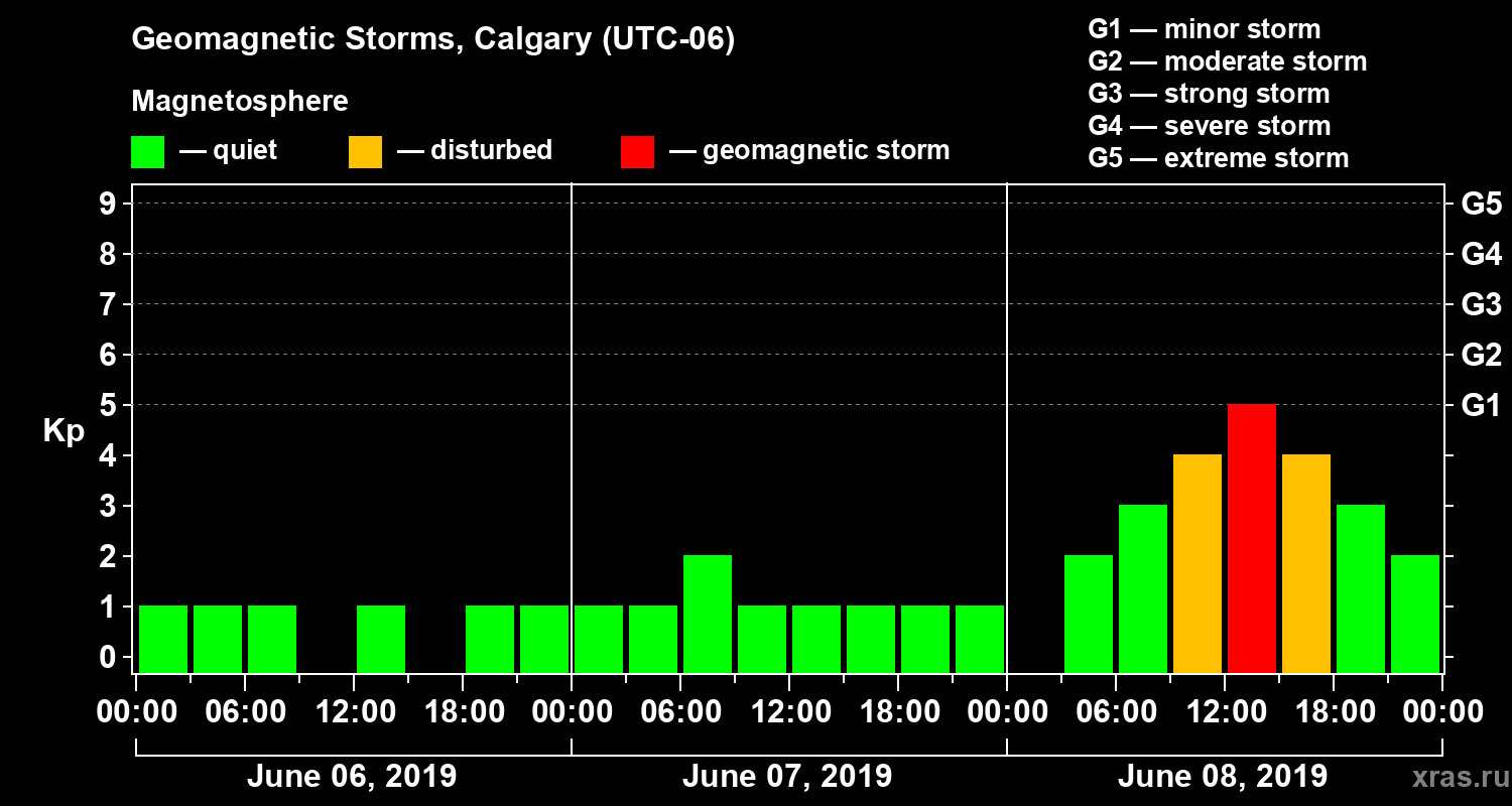 Geomagnetic storms in Calgary on Jun 08, 2019