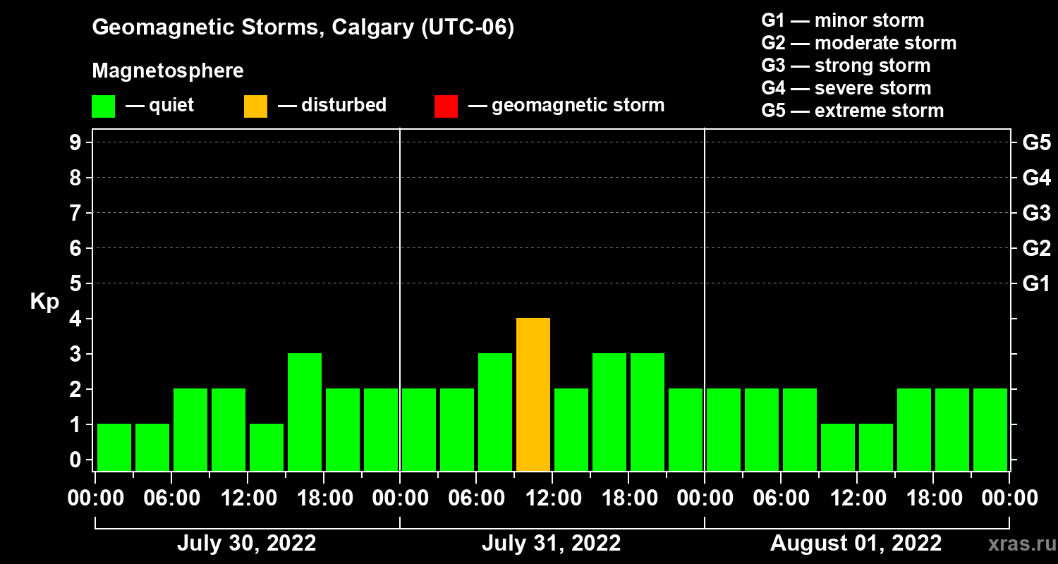 Geomagnetic storms in Calgary on Aug 01, 2022