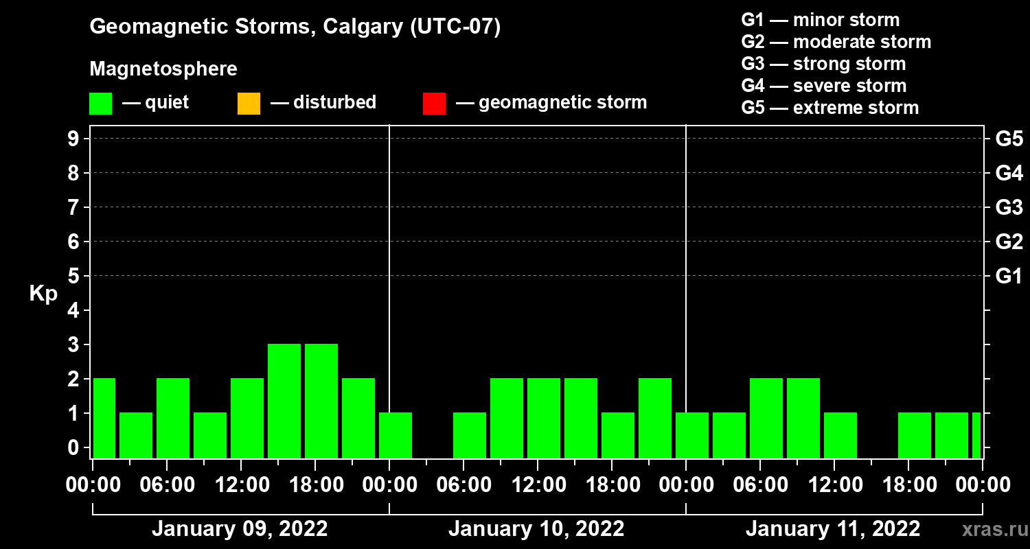 Geomagnetic storms in Calgary on Jan 11, 2022