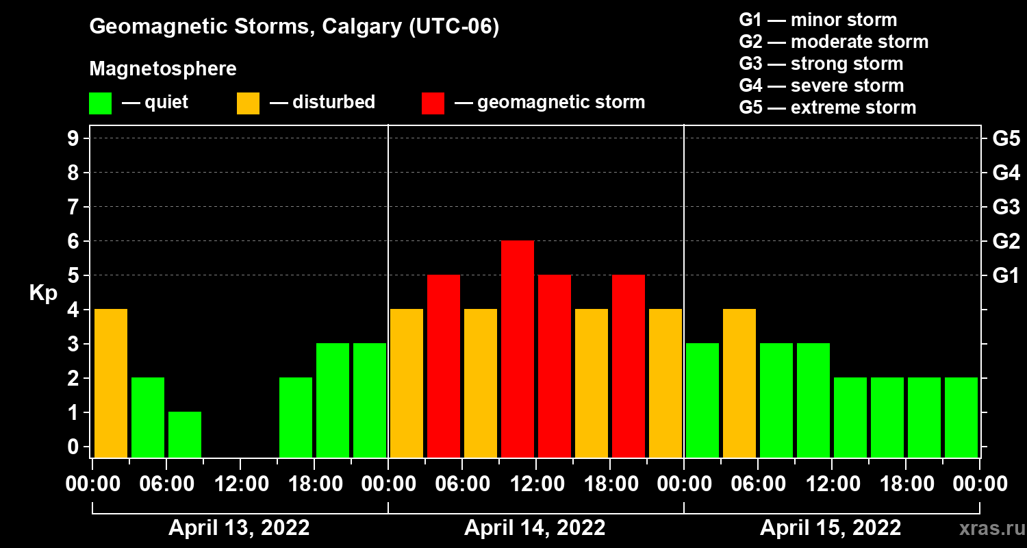 Geomagnetic storms in Calgary on Apr 15, 2022