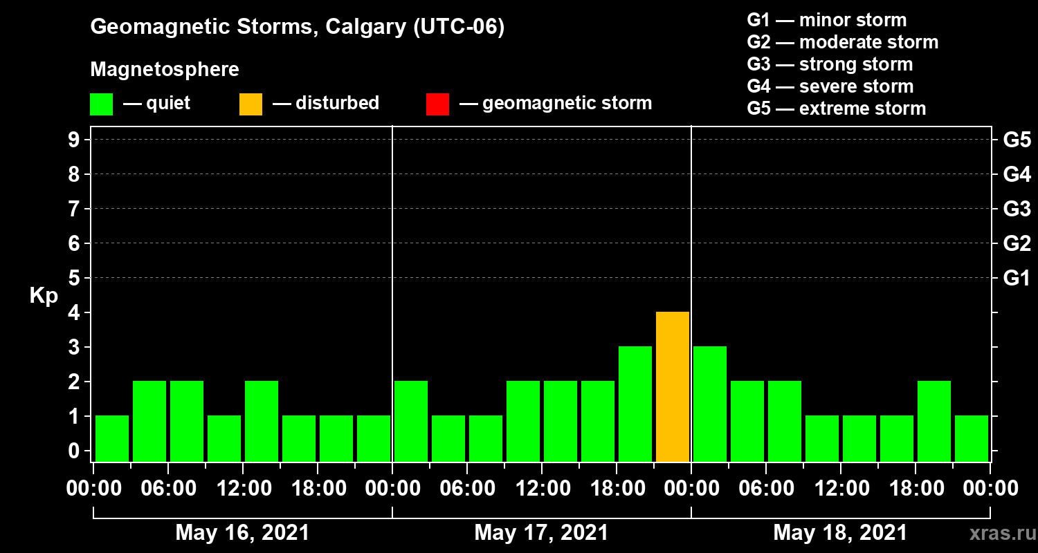 Geomagnetic storms in Calgary on May 18, 2021