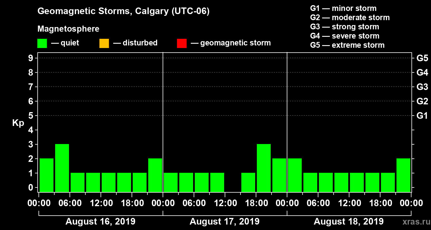 Geomagnetic storms in Calgary on Aug 18, 2019