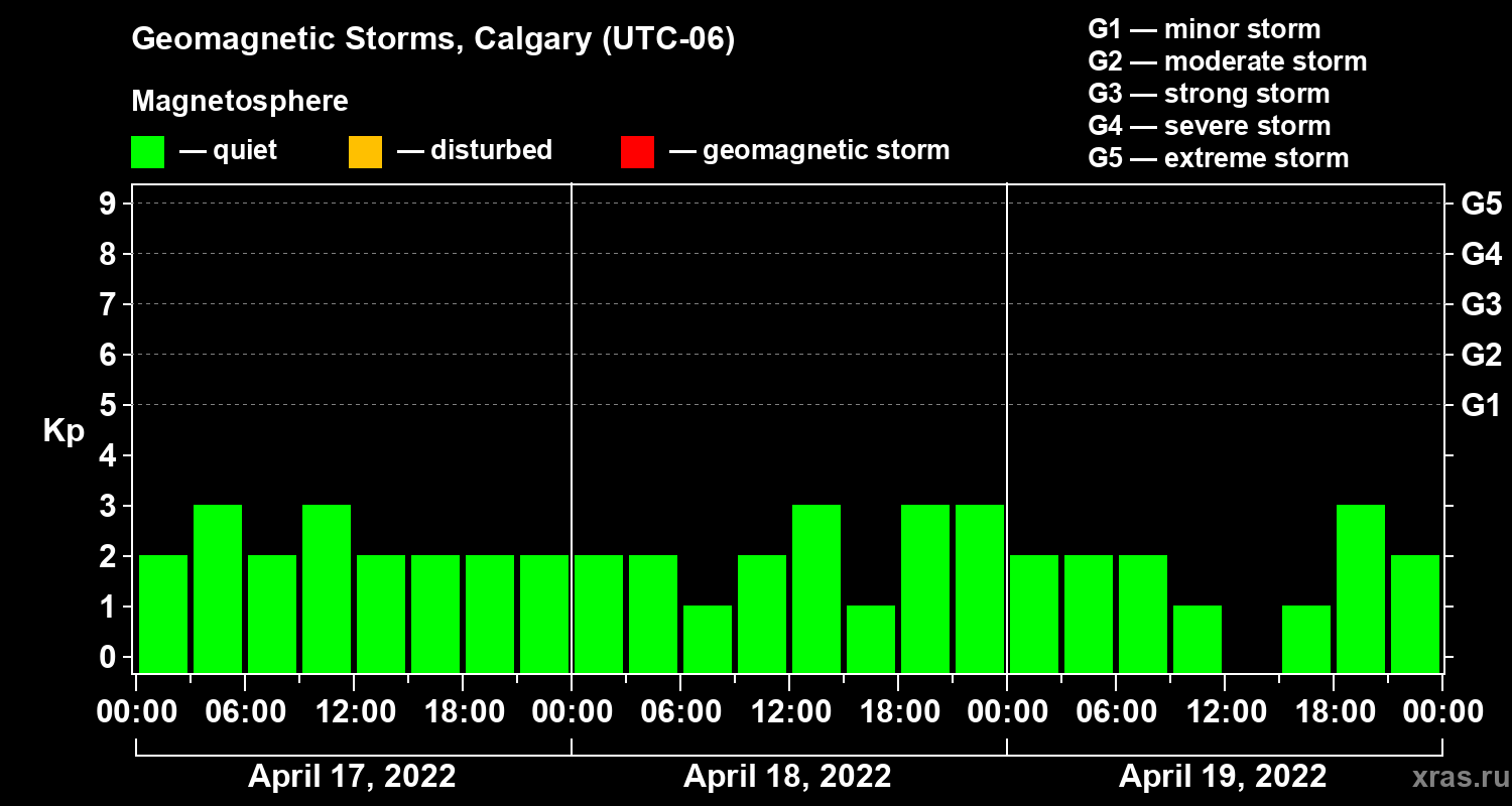 Geomagnetic storms in Calgary on Apr 19, 2022