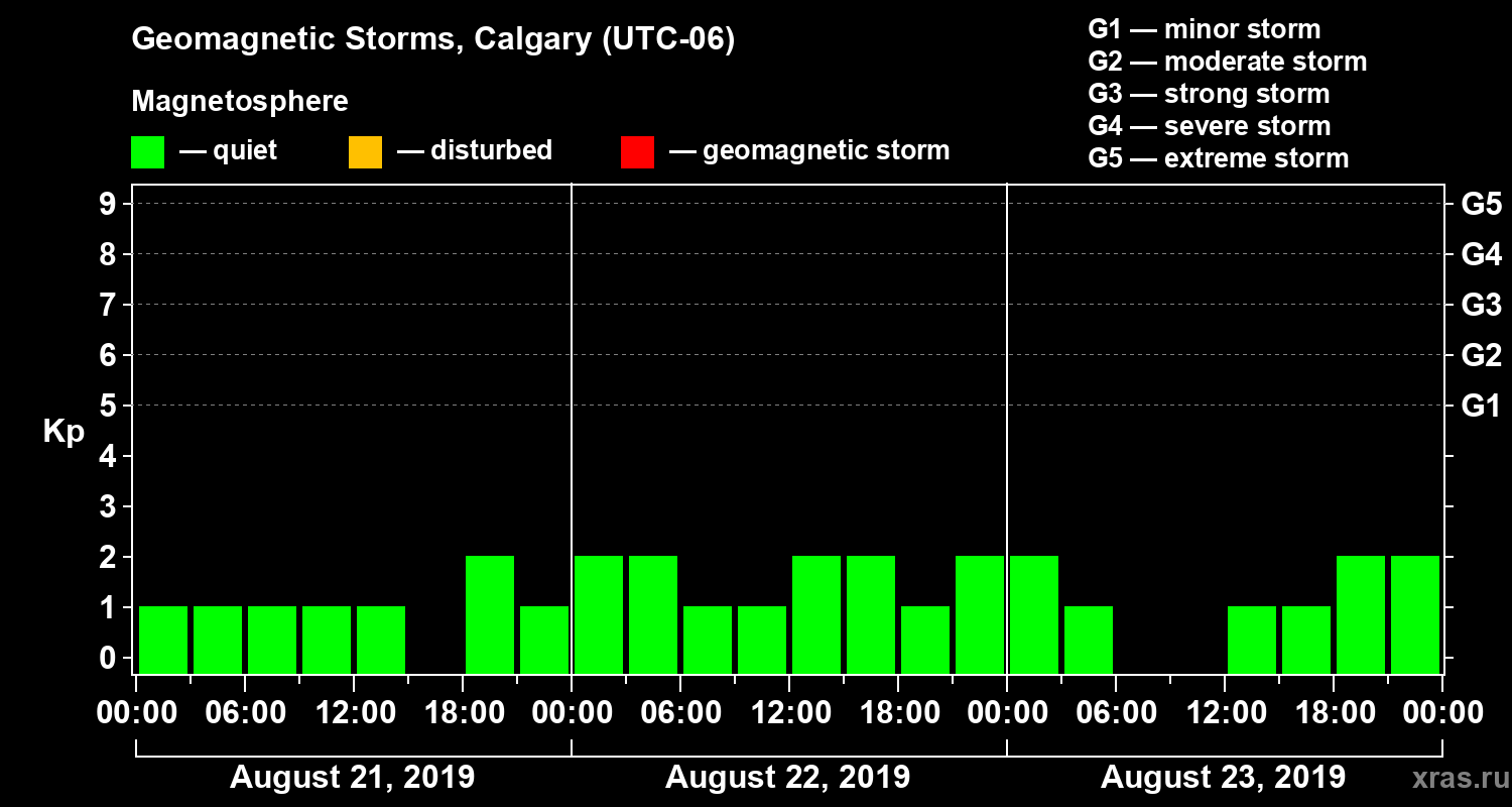Geomagnetic storms in Calgary on Aug 23, 2019