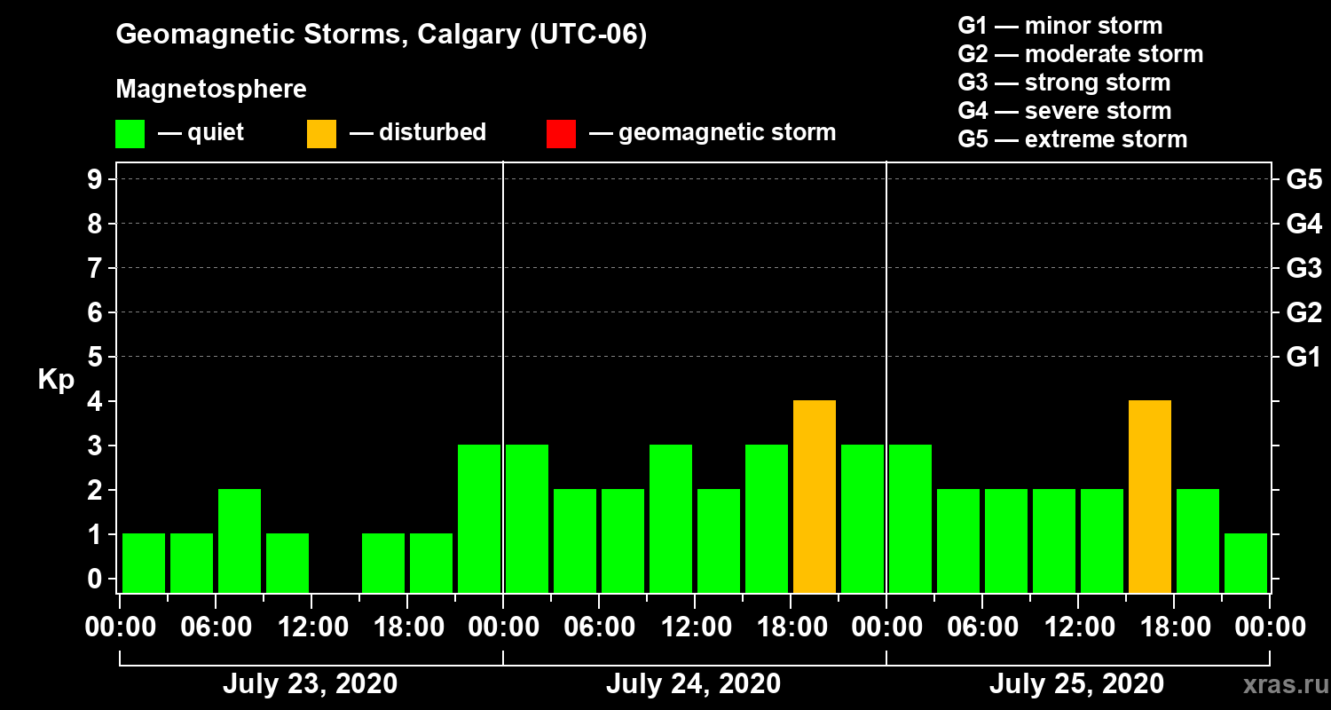 Geomagnetic storms in Calgary on Jul 25, 2020
