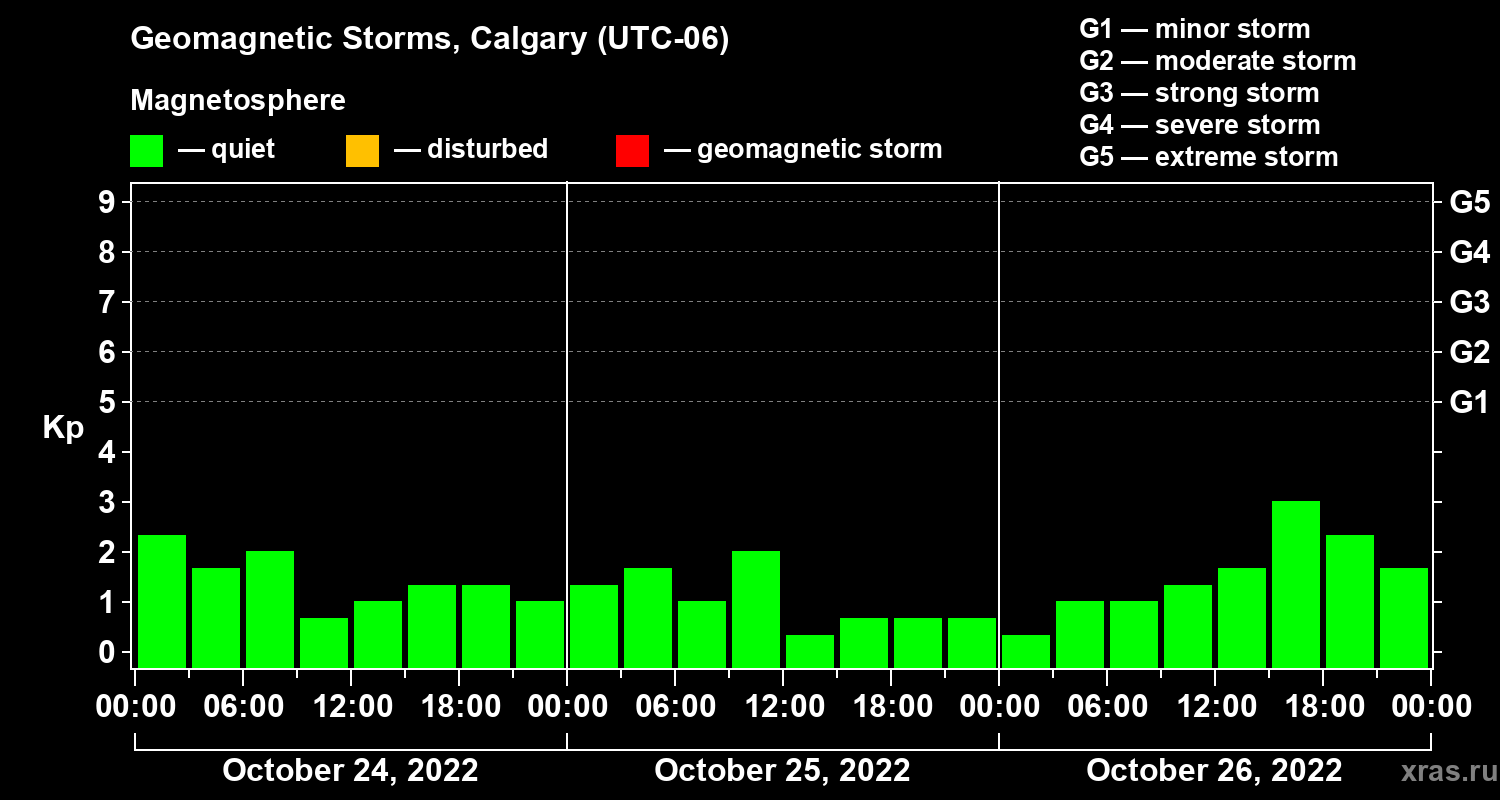 Geomagnetic storms in Calgary on Oct 26, 2022