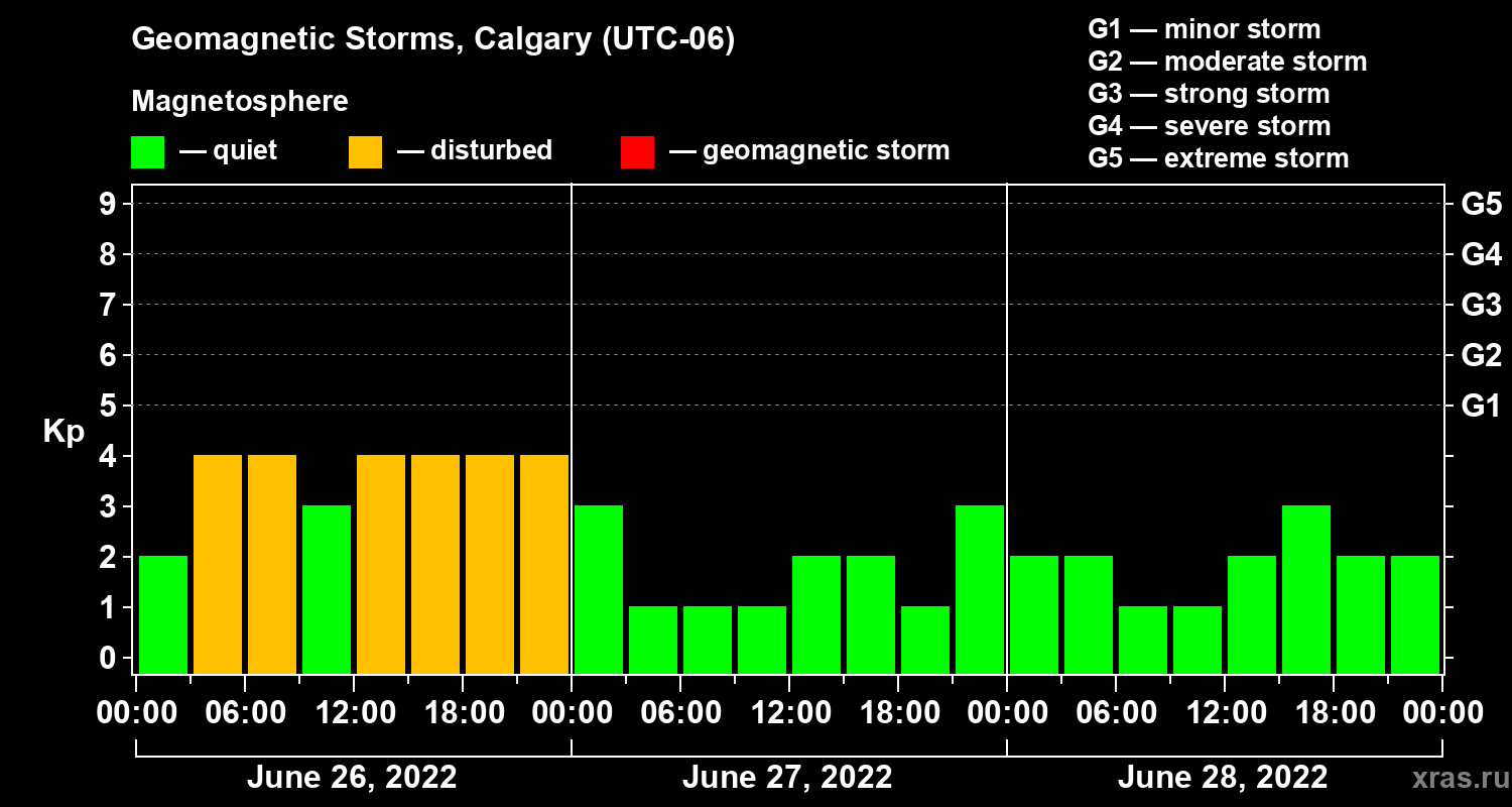 Geomagnetic storms in Calgary on Jun 28, 2022
