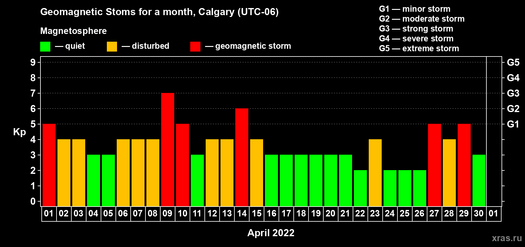 Geomagnetic storms in Calgary in April 2022