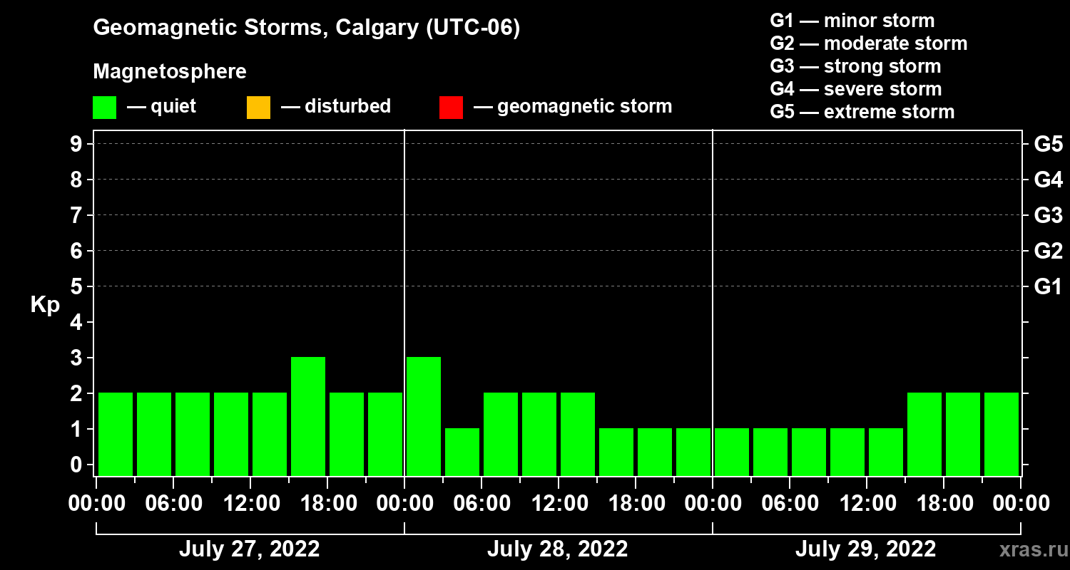 Geomagnetic storms in Calgary on Jul 29, 2022