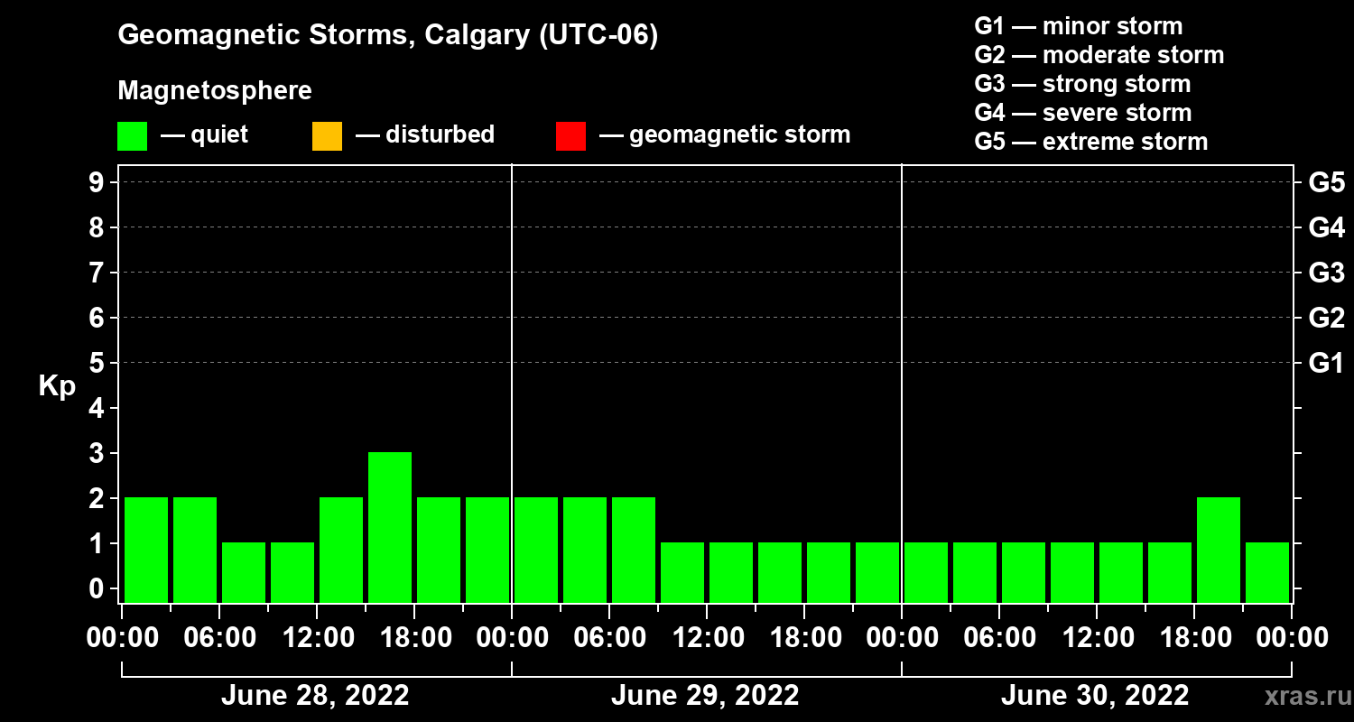 Geomagnetic storms in Calgary on Jun 30, 2022