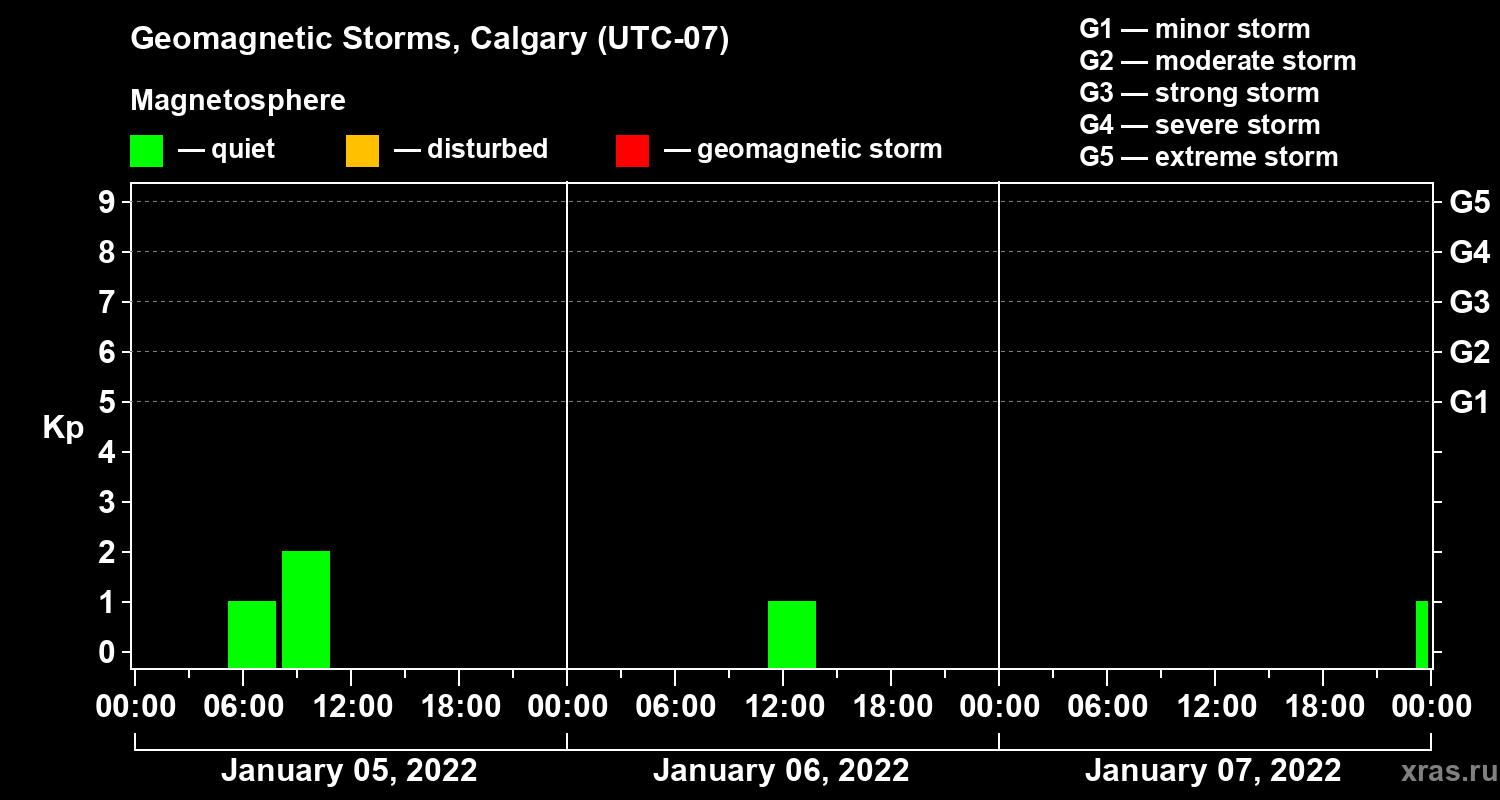 Geomagnetic storms in Calgary on Jan 07, 2022