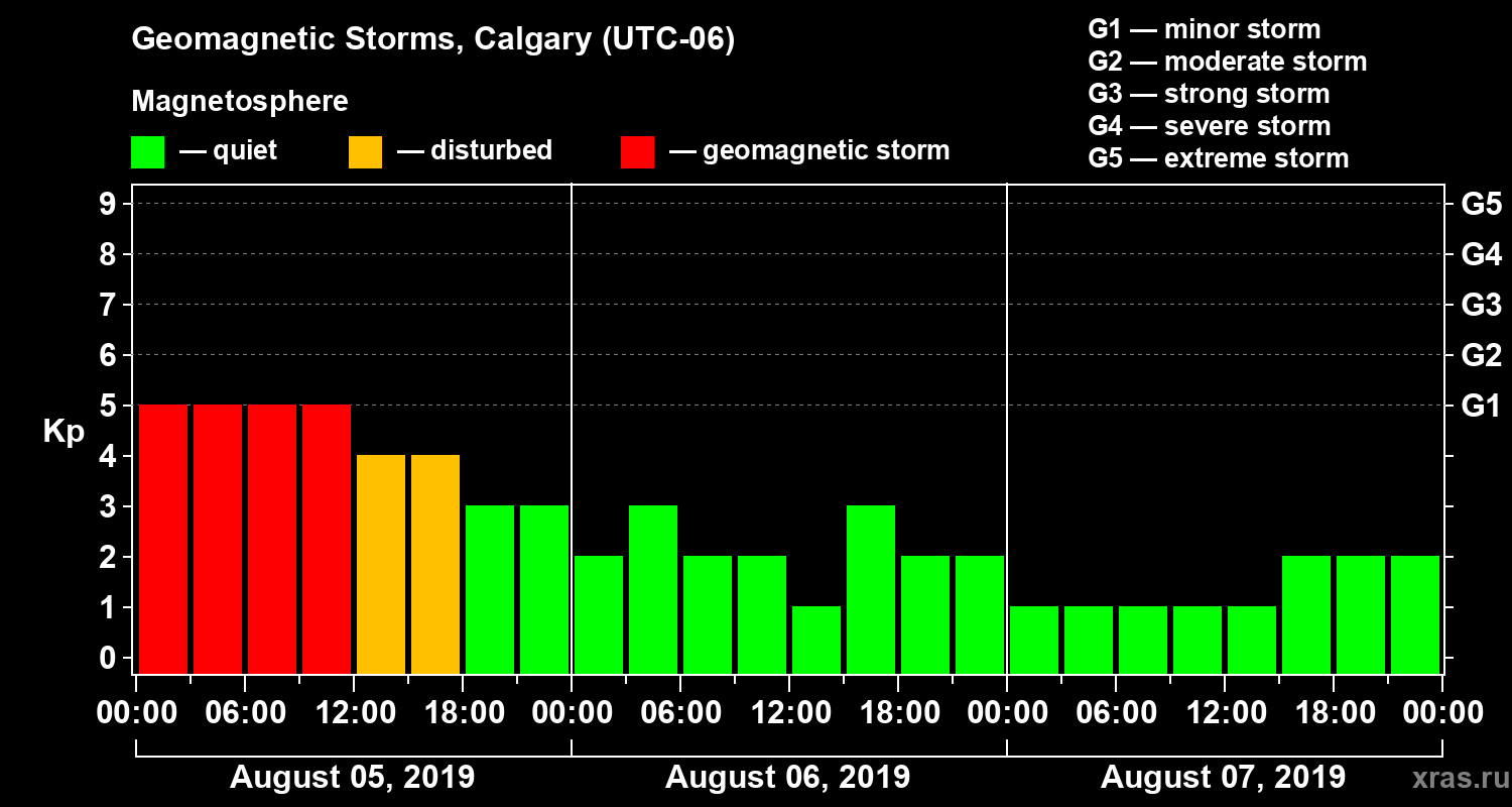 Geomagnetic storms in Calgary — Aug 07, 2019
