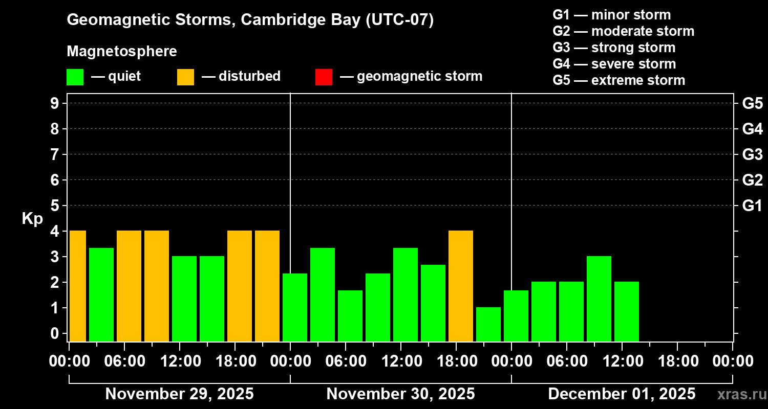 Geomagnetic storms in Cambridge Bay — Dec 01, 2025