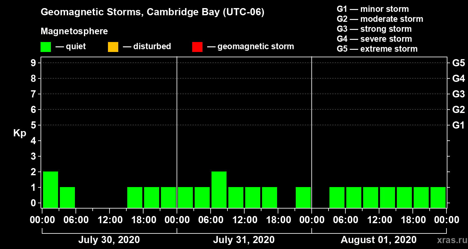 Geomagnetic storms in Cambridge Bay — Aug 01, 2020