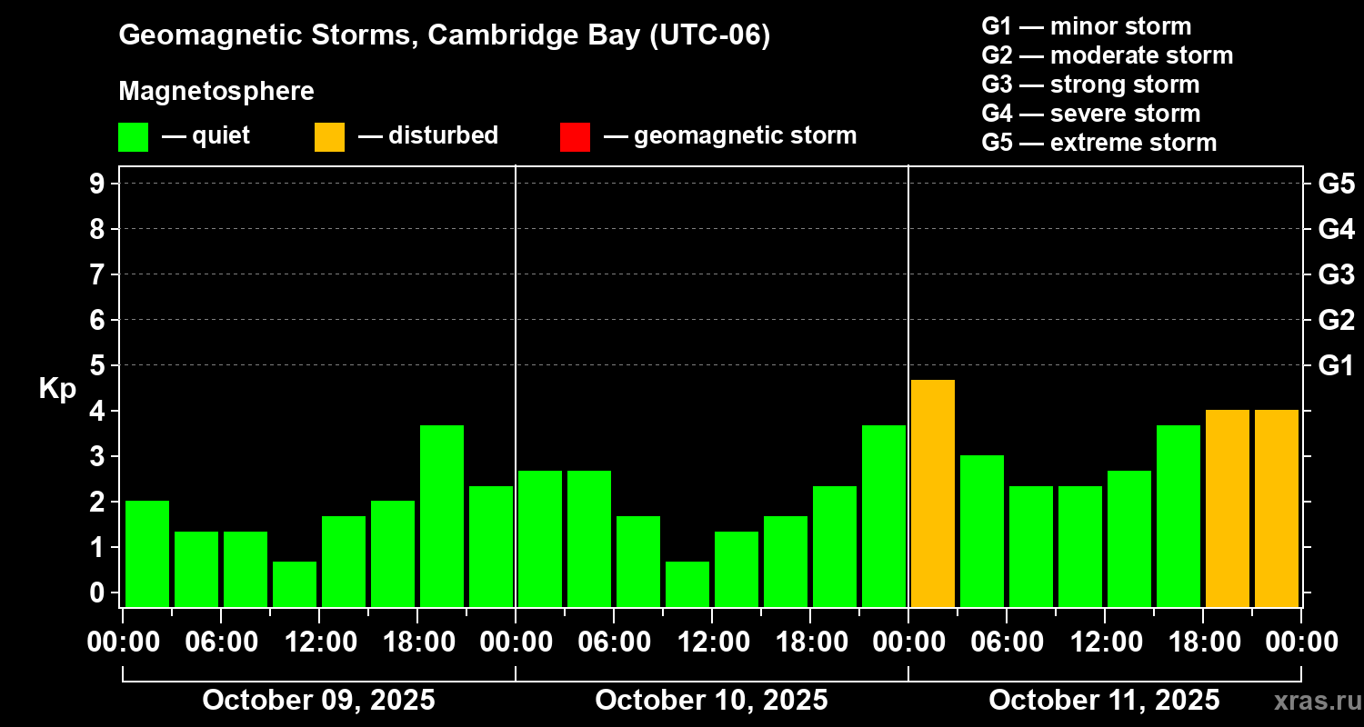 Geomagnetic storms in Cambridge Bay — Oct 11, 2025