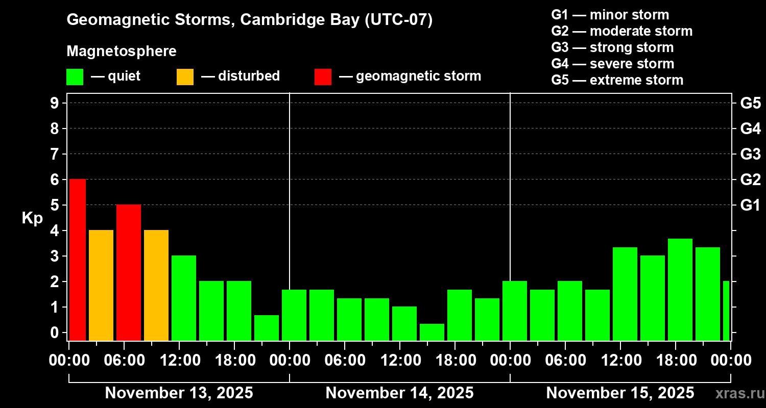 Geomagnetic storms in Cambridge Bay — Nov 15, 2025
