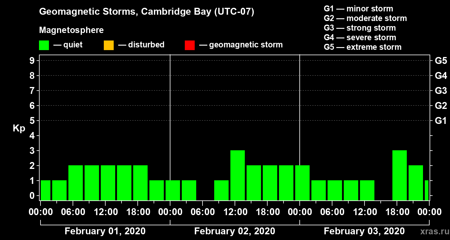 Geomagnetic storms in Cambridge Bay — Feb 03, 2020