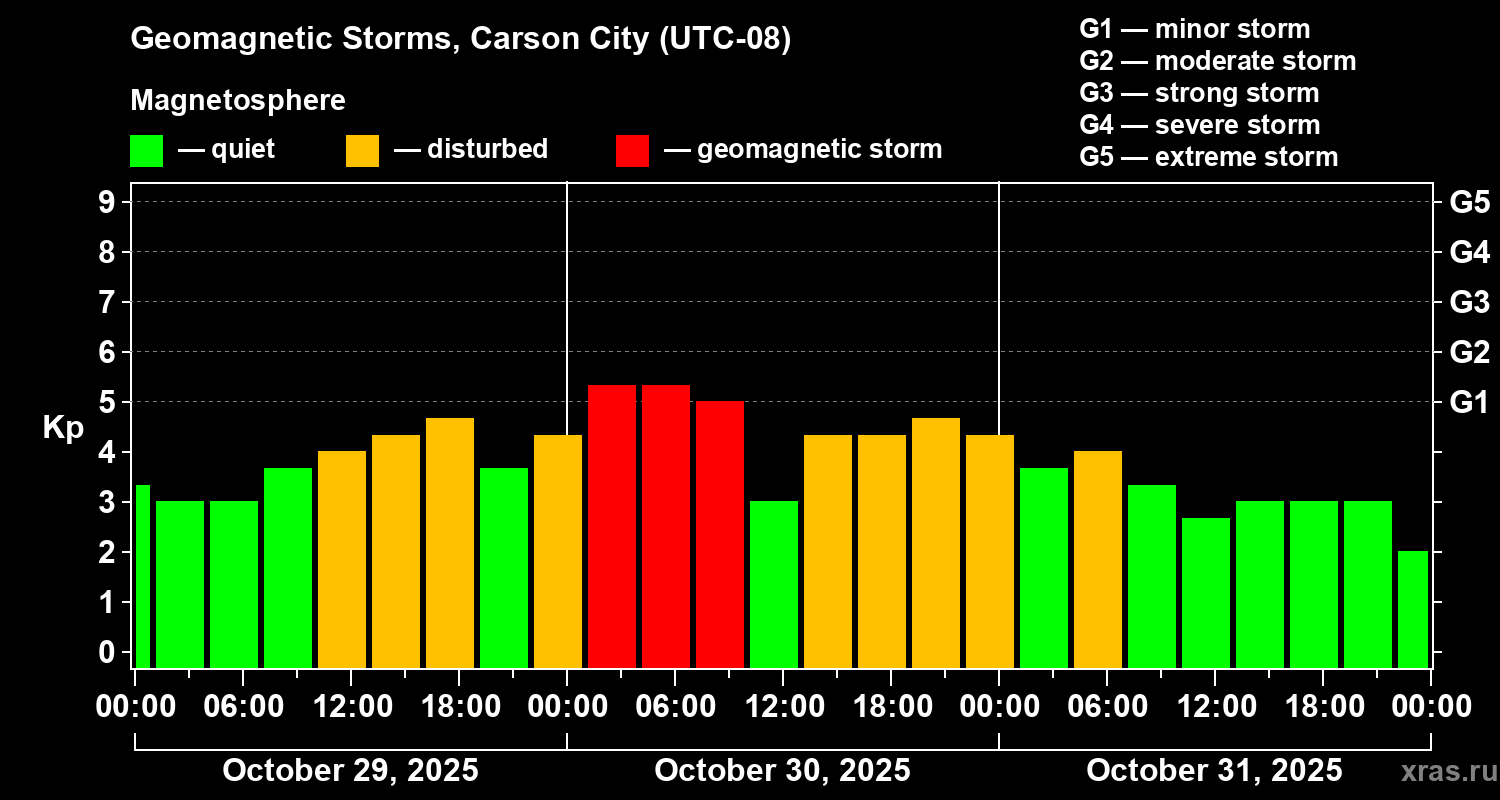 Geomagnetic storms in Carson City — Oct 31, 2025