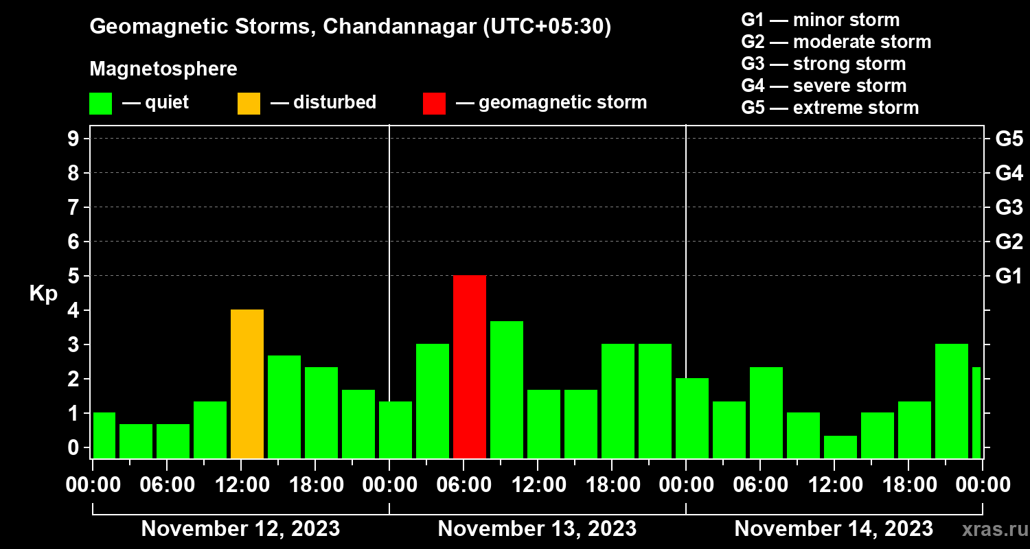 Geomagnetic storms in Chandannagar — Nov 14, 2023
