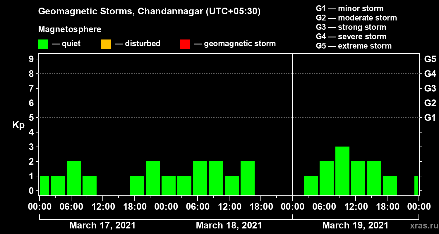 Geomagnetic storms in Chandannagar — Mar 19, 2021