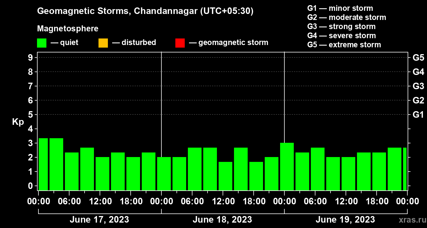 Geomagnetic storms in Chandannagar — Jun 19, 2023