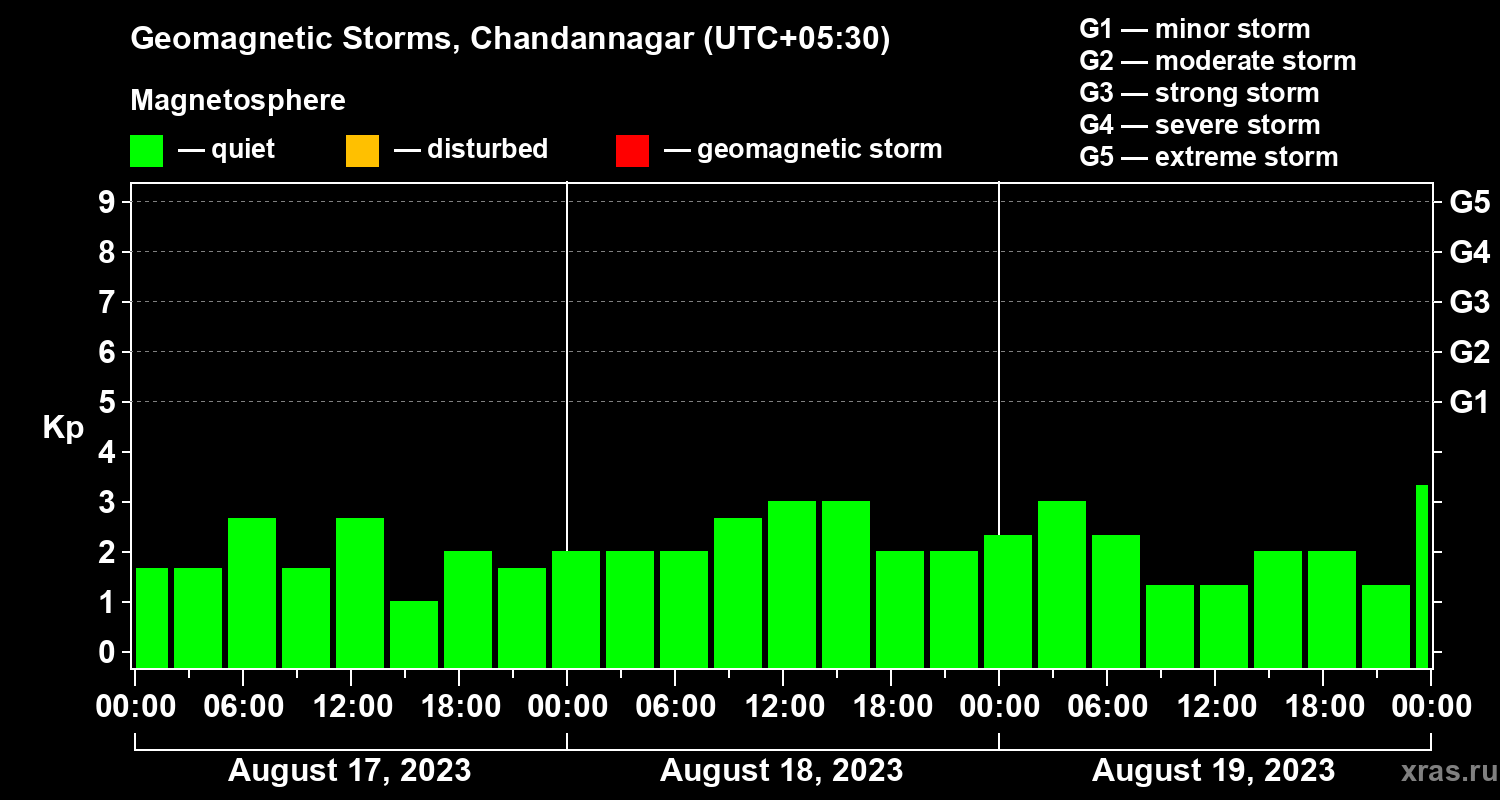 Geomagnetic storms in Chandannagar — Aug 19, 2023