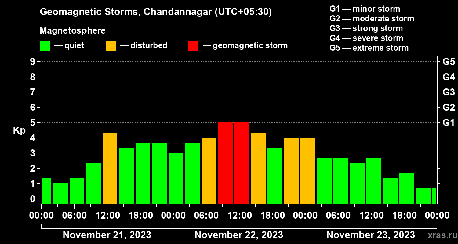 Geomagnetic storms in Chandannagar — Nov 23, 2023