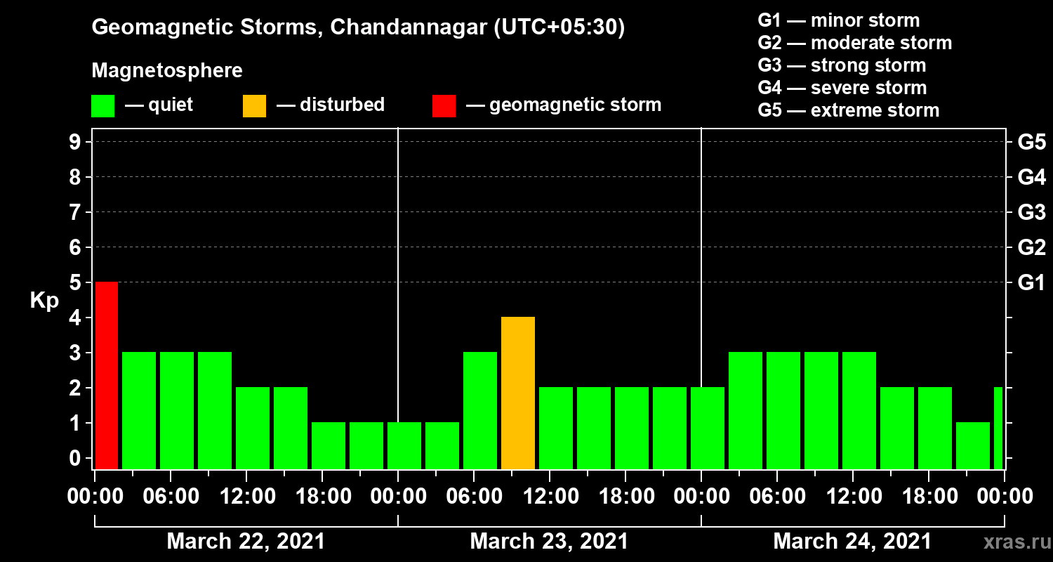 Geomagnetic storms in Chandannagar — Mar 24, 2021