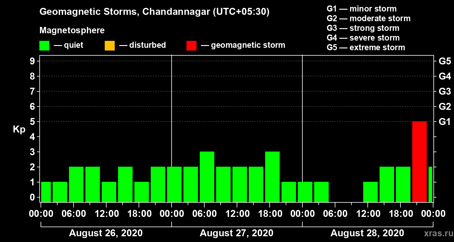 Geomagnetic storms in Chandannagar — Aug 28, 2020