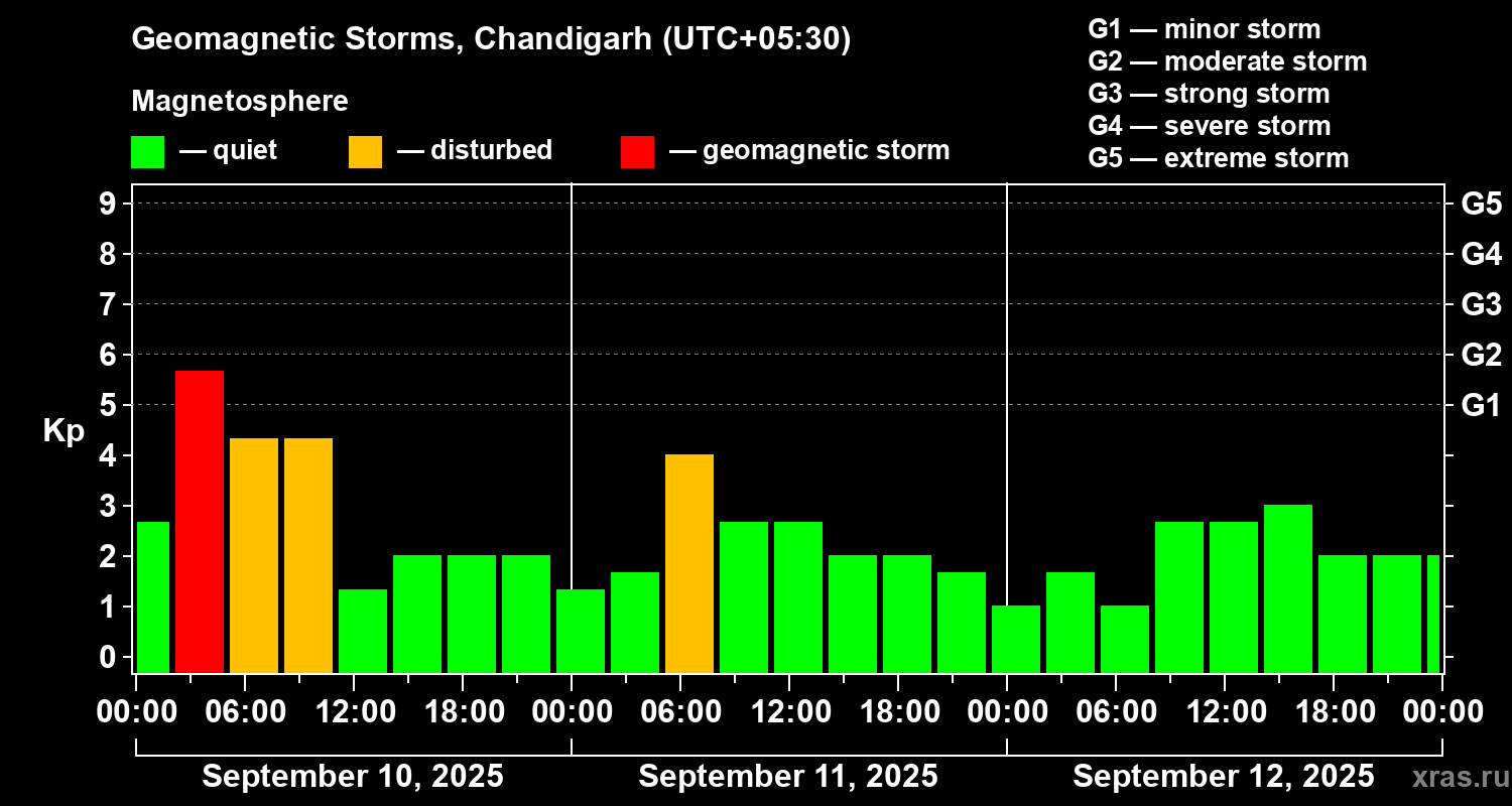 Geomagnetic storms in Chandigarh — Sep 12, 2025