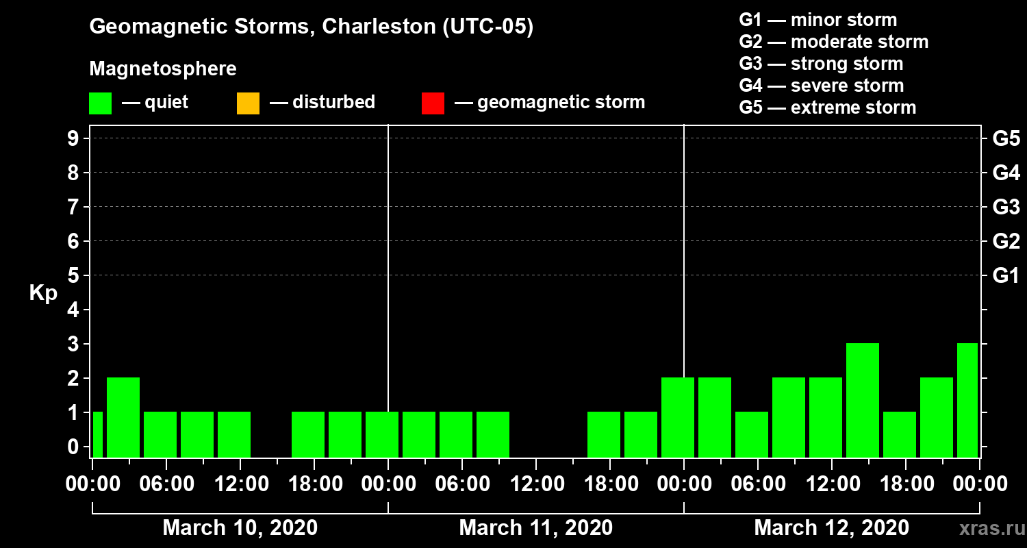 Geomagnetic storms in Charleston on Mar 12, 2020