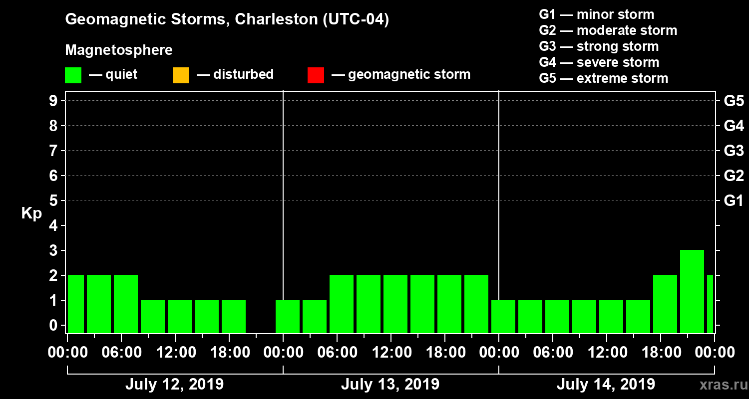 Geomagnetic storms in Charleston in July 2019