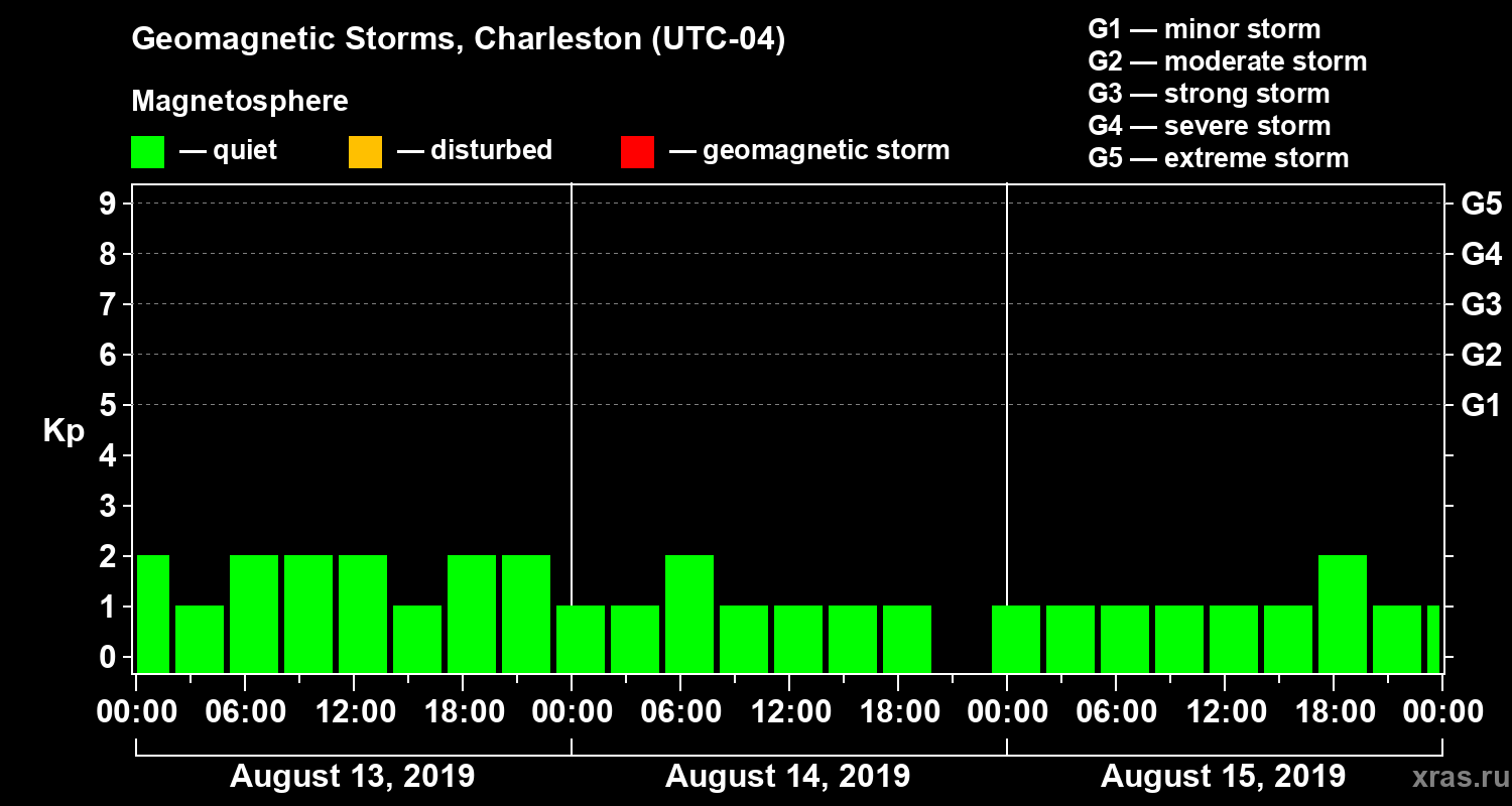 Geomagnetic storms in Charleston on Aug 15, 2019