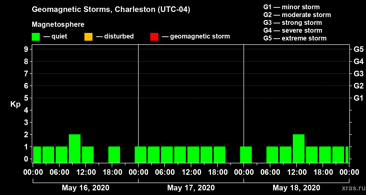 Changes in the geomagnetic index Kp from May 16 to 18, 2020 for mid latitudes