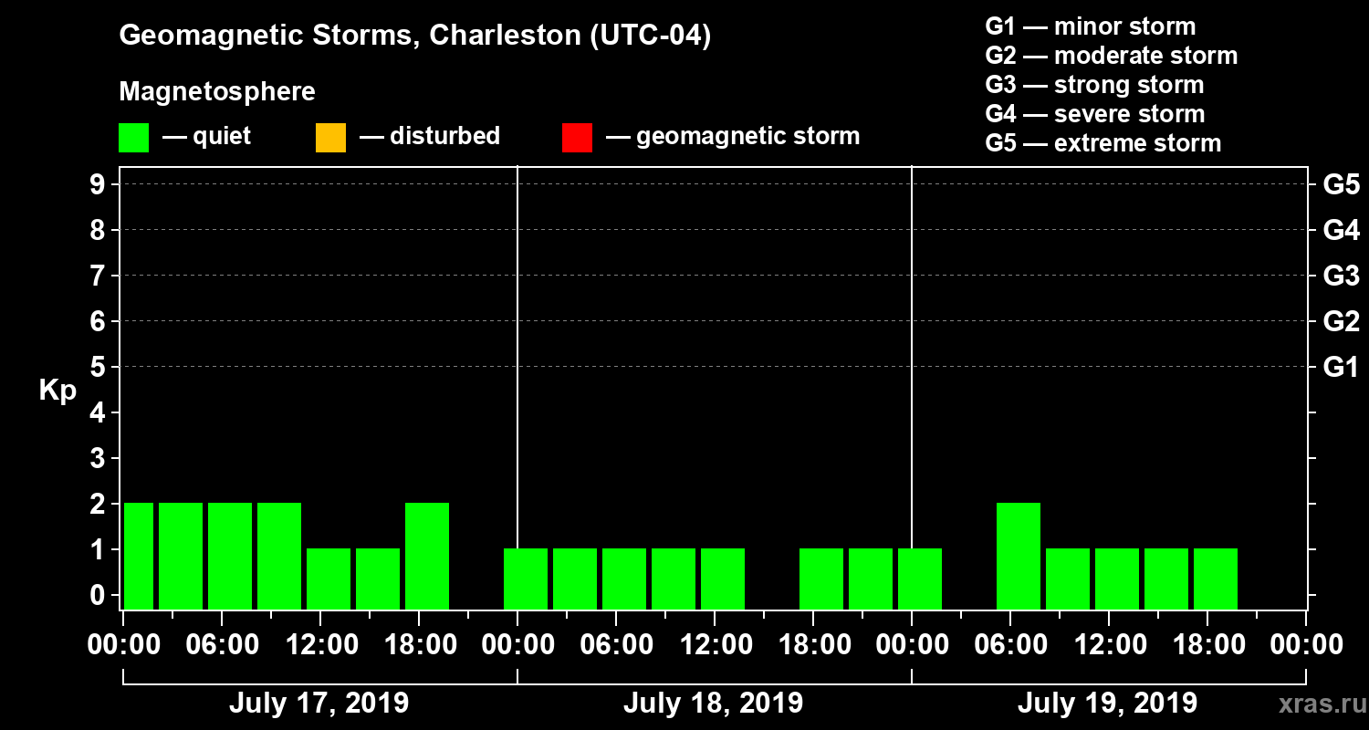 Geomagnetic storms in Charleston in July 2019