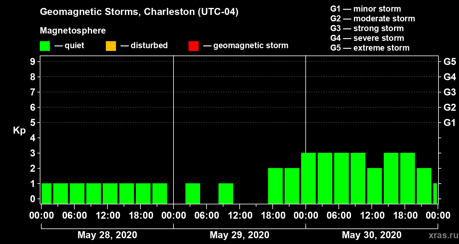 Geomagnetic storms in Charleston on May 30, 2020
