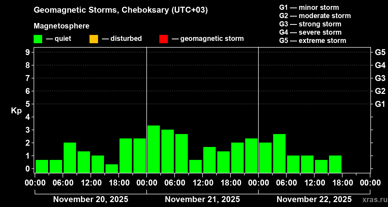 Магнитные бури Чебоксарах в ноябре 2025 года