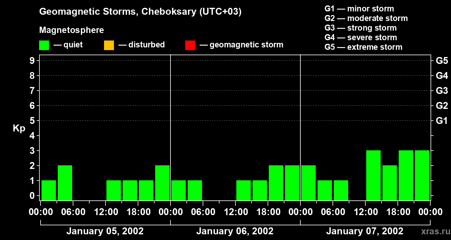 Geomagnetic storms in Cheboksary — Jan 07, 2002