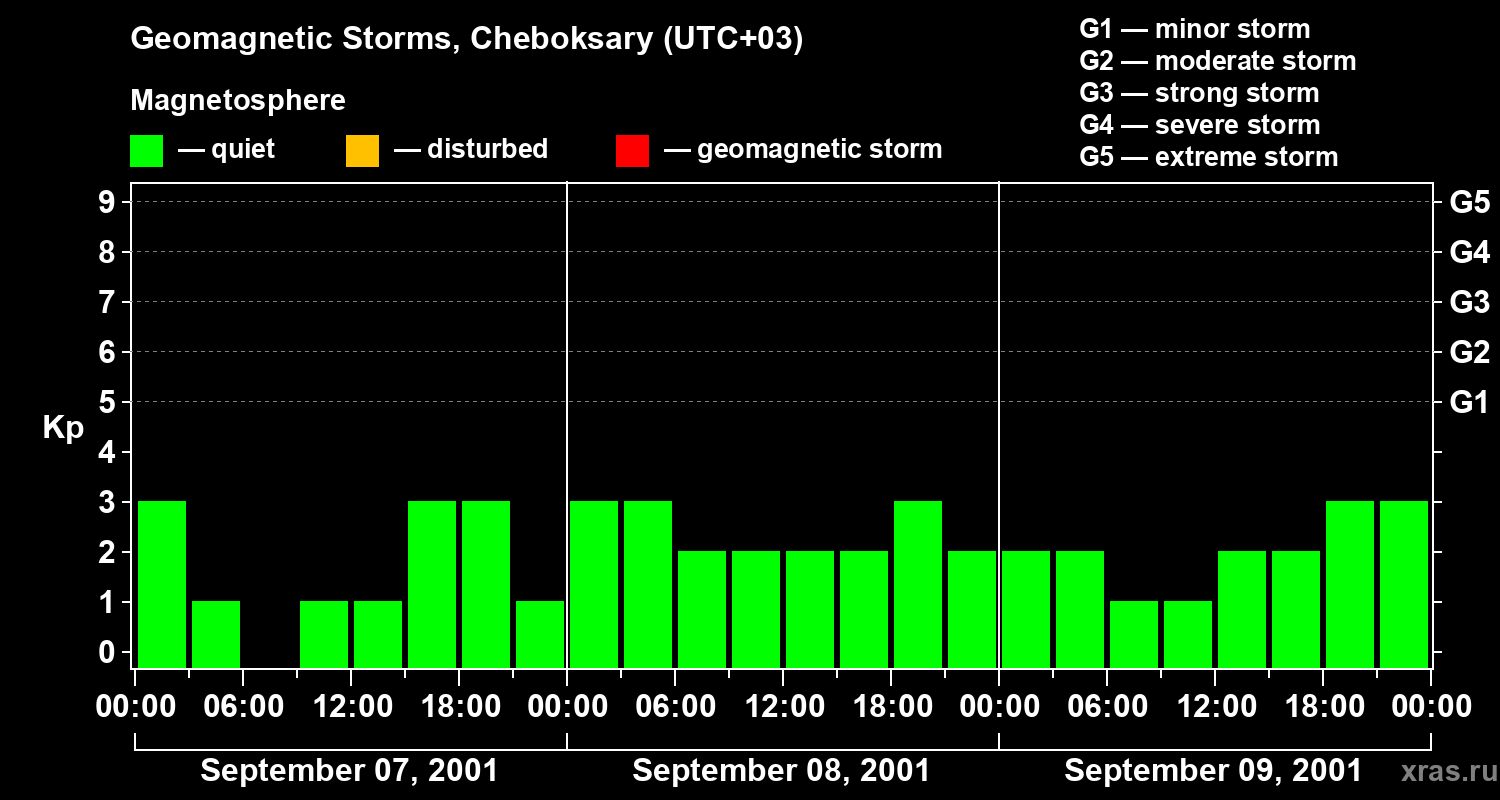 Geomagnetic storms in Cheboksary on Sep 09, 2001