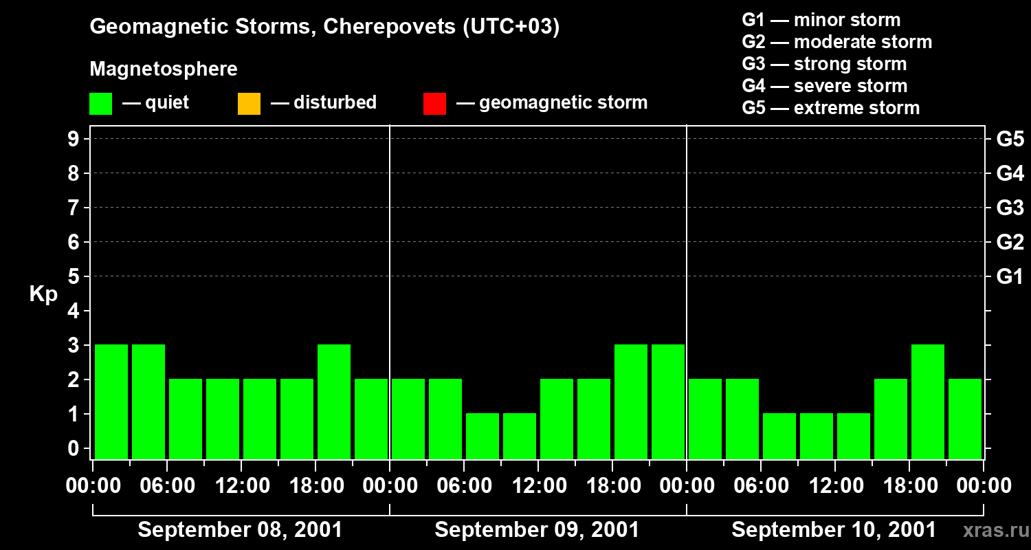 Geomagnetic storms in Cherepovets — Sep 10, 2001
