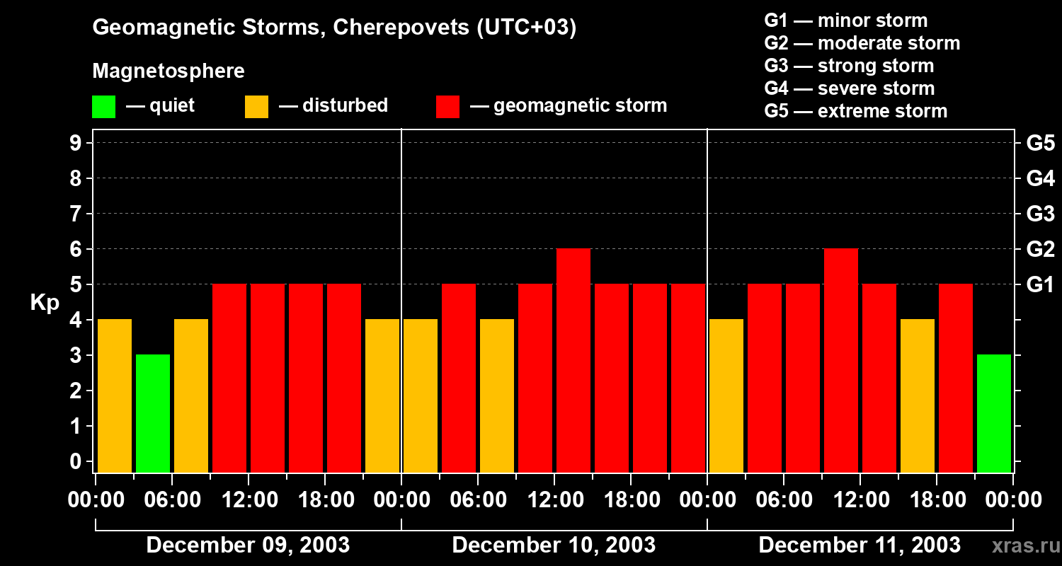 Geomagnetic storms in Cherepovets — Dec 11, 2003