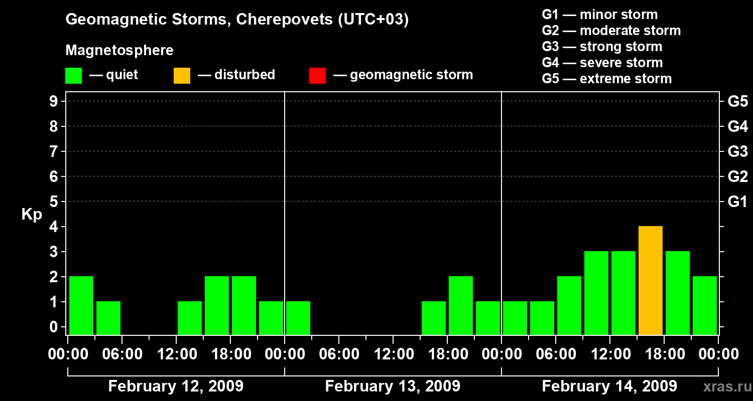 Geomagnetic storms in Cherepovets — Feb 14, 2009