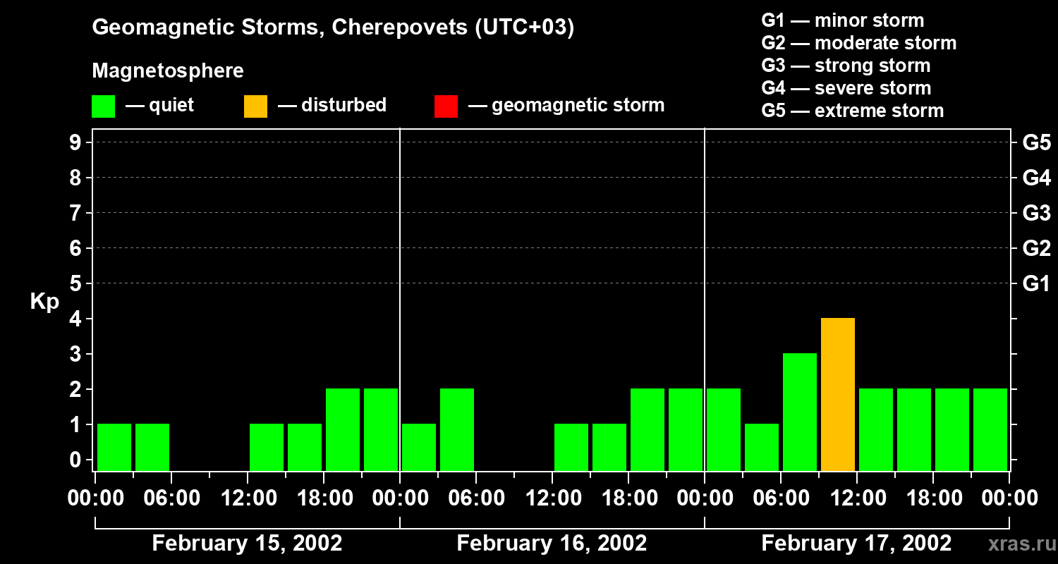 Geomagnetic storms in Cherepovets — Feb 17, 2002