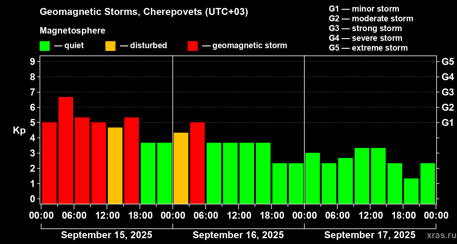 Geomagnetic storms in Cherepovets — Sep 17, 2025
