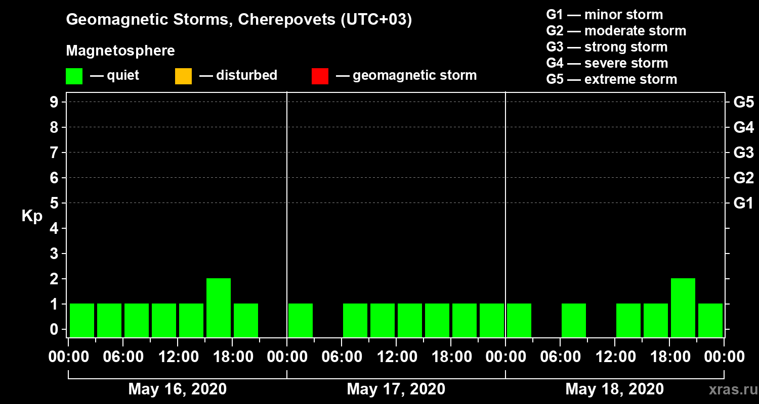 Geomagnetic storms in Cherepovets — May 18, 2020