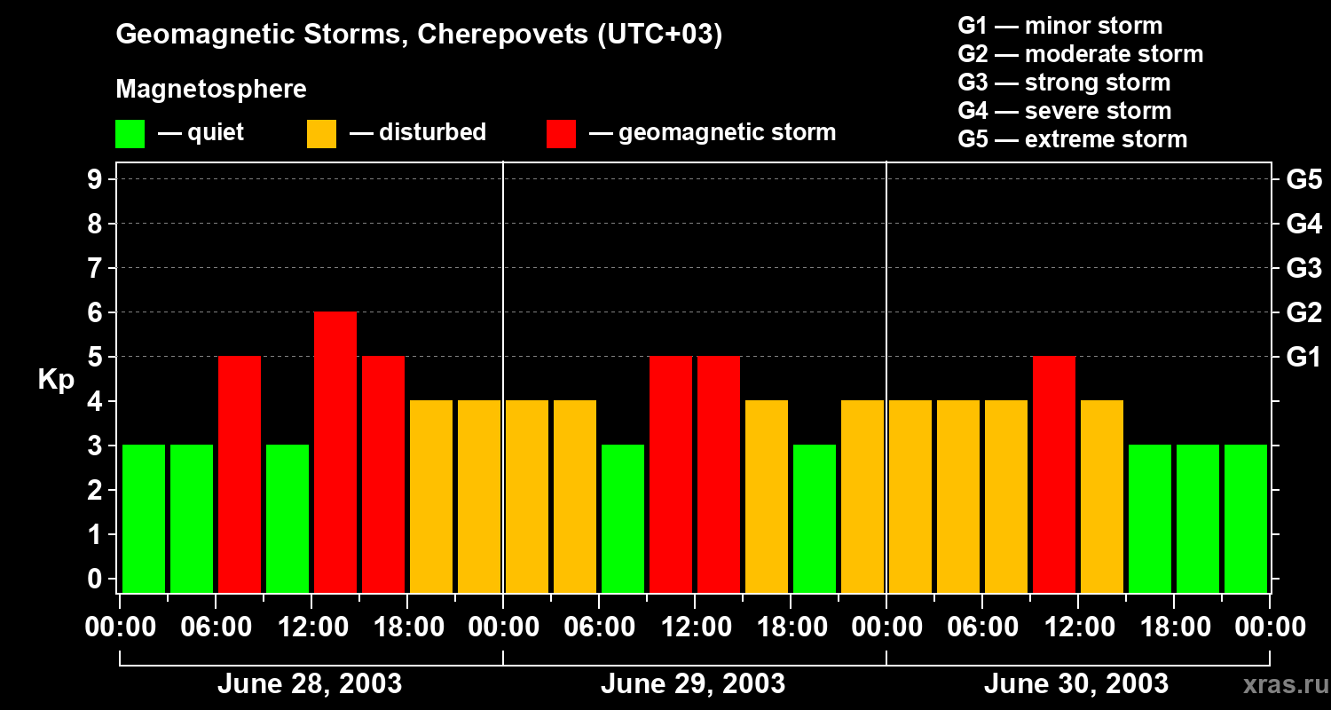 Geomagnetic storms in Cherepovets — Jun 30, 2003