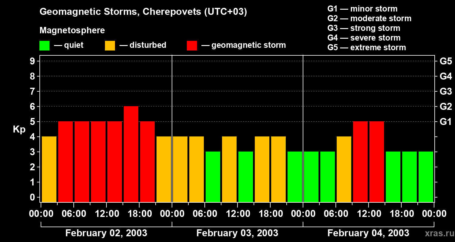 Geomagnetic storms in Cherepovets — Feb 04, 2003