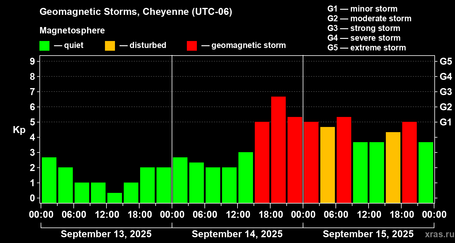 Geomagnetic storms in Cheyenne — Sep 15, 2025